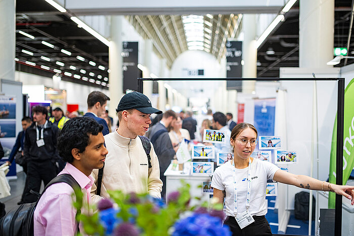Zahlreiche Studenten und Studentinnen, Absolventen und Absolventinnen sowie Besuchende auf der Suche nach einer neuen beruflichen Herausforderung nutzen die Gelegenheit, auf der WindEnergy Hamburg direkt mit potenziellen Arbeitgebern in Kontakt zu treten.